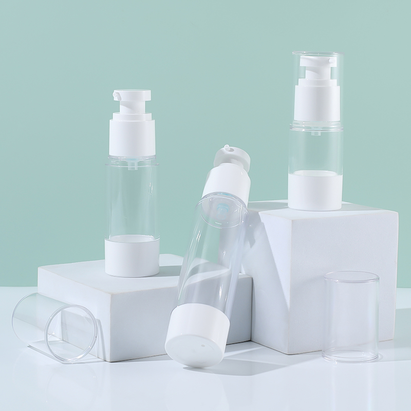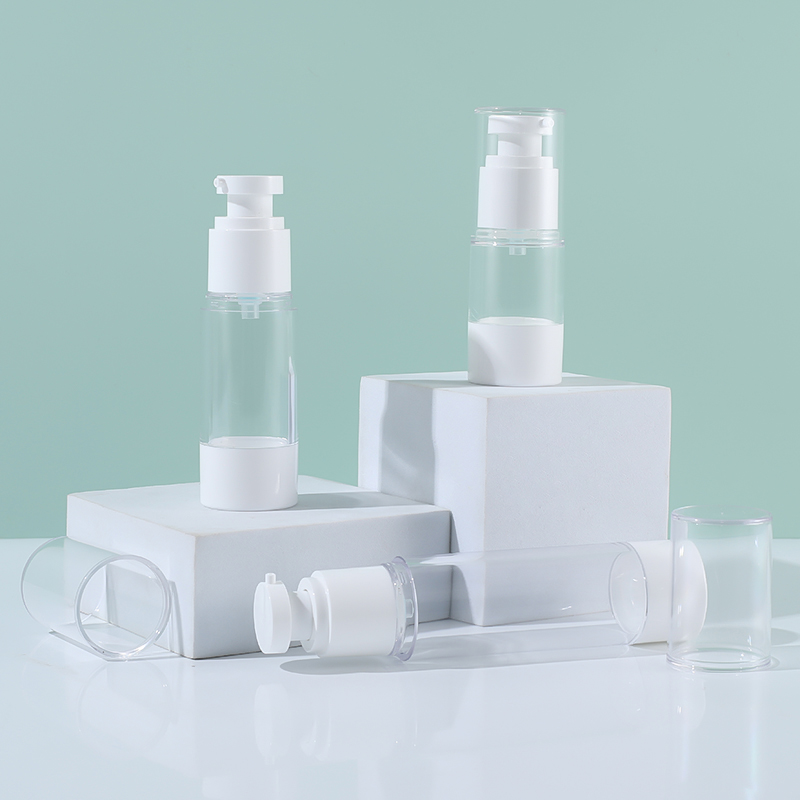 20ML 30ML 50ML AS PP Transparent seal Airless cosmetic pump Bottle HS-008B vacuum pump bottle ay naging popular na pagpipilian para sa mid-to-high-end na cosmetic packaging dahil sa kaligtasan ng materyal, functional stability at mga katangian ng proteksyon sa kapaligiran.