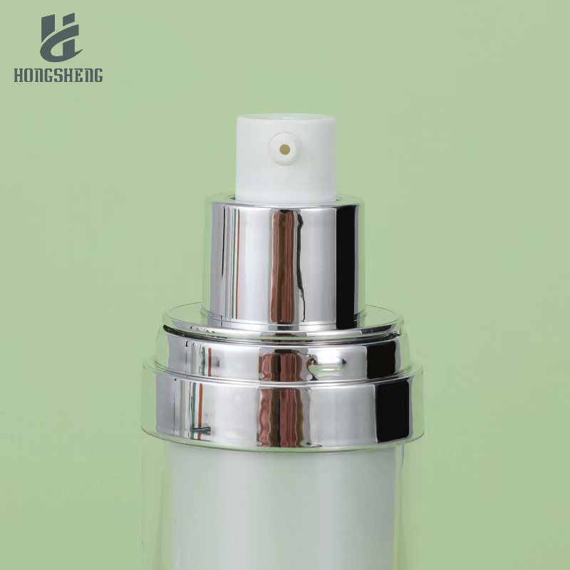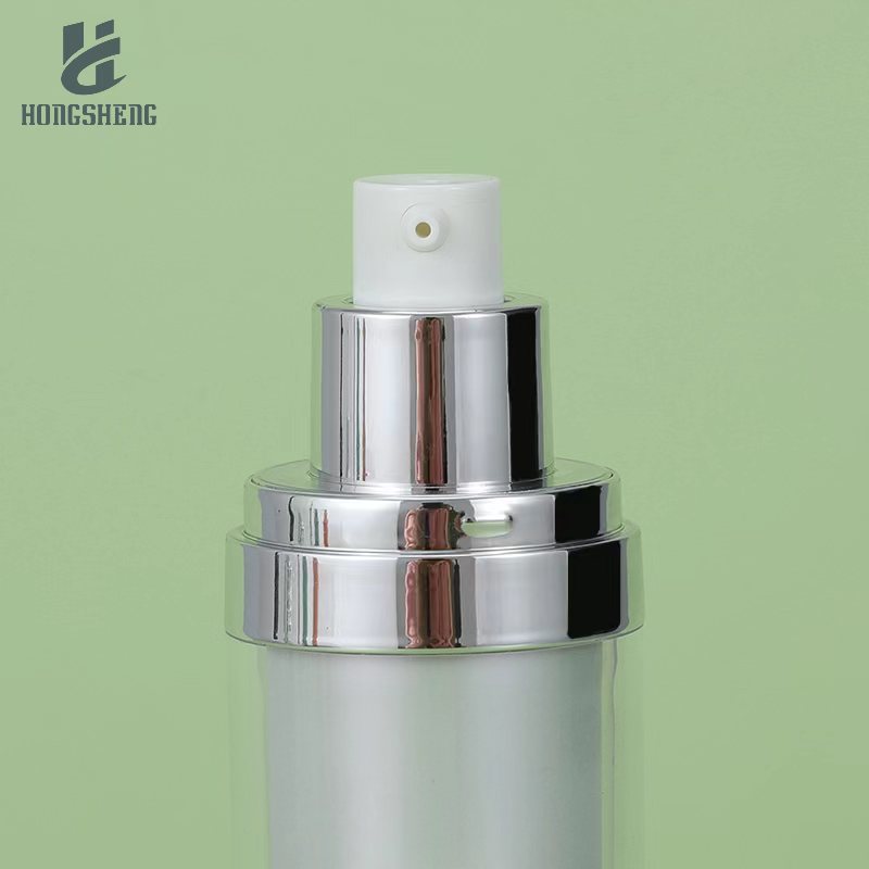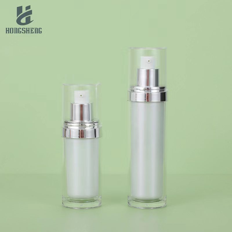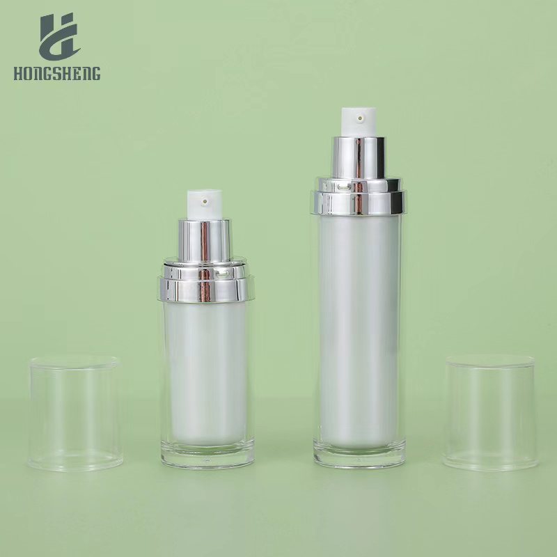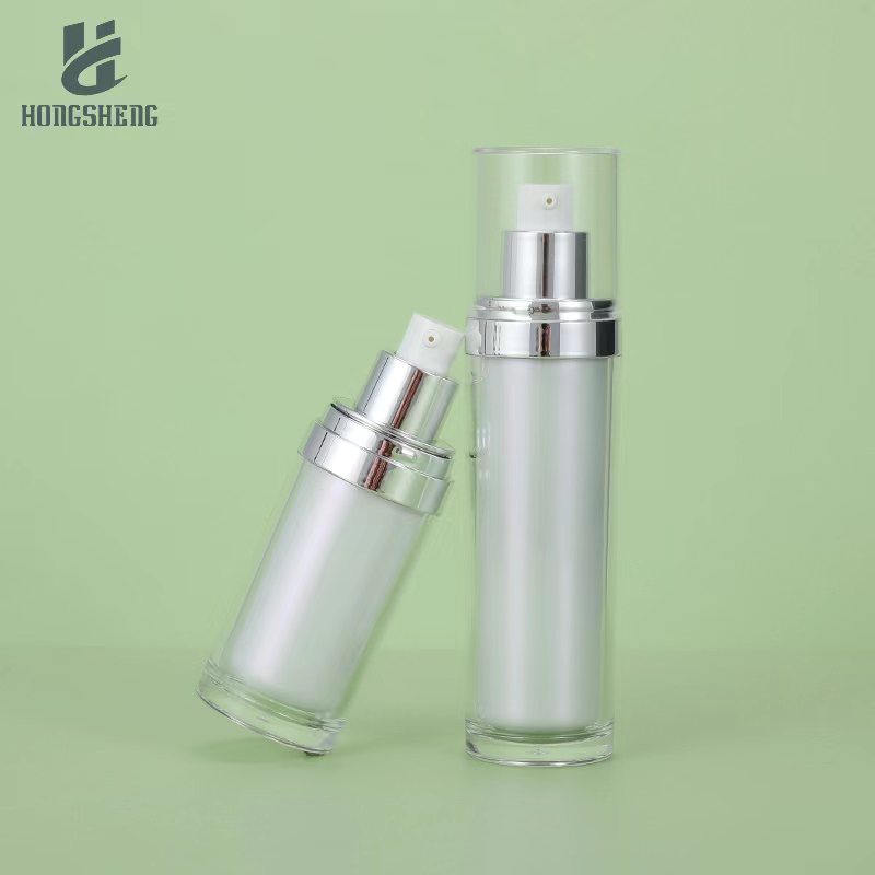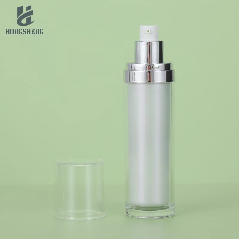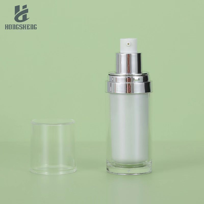 HS-033A Empty Round Acrylic Lotion Pump Bottle Gold Inner Luxury Skincare Bottles Packaging gumagamit ng PET inner liner na materyal na sinamahan ng isang vacuum pump system, na hindi lamang magaan at environment friendly, ngunit tinitiyak din na ang mga nilalaman ay ganap na nakahiwalay sa hangin, na lubos na nagpapabuti sa katatagan at kahusayan ng formula.